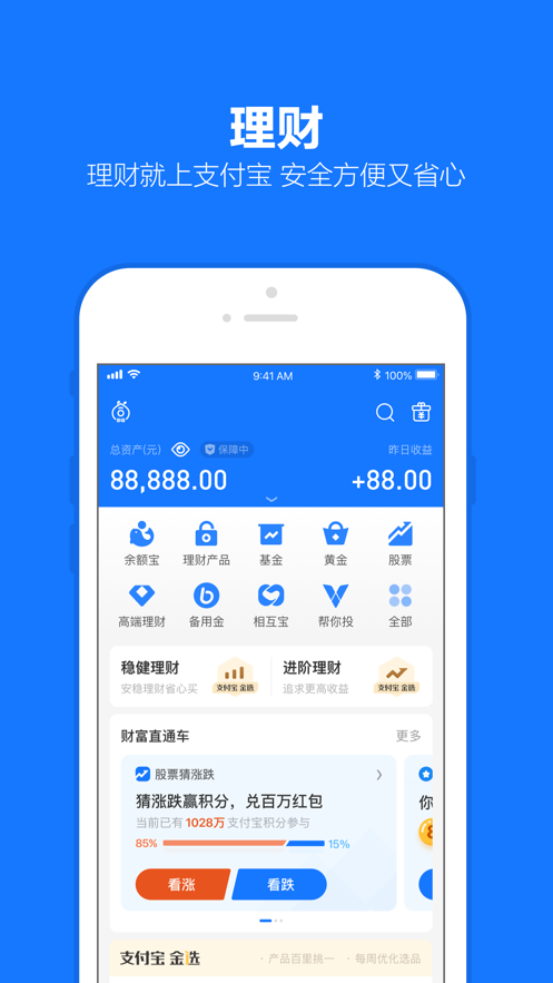 1、支持余额宝,理财收益随时查看;