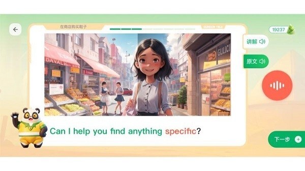 情景模拟采用多分支问答模式,即一个问题对应多个答案,相比于传统的一问一答模式,小英的情景模拟能够更灵活多样、更人性化地进行口语训练。
