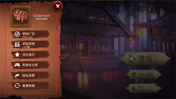 1、点击左上角的选项,在这儿你可以看到移除广告、奖励视频等;