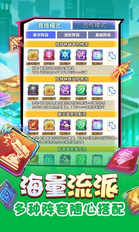 3.轻松愉快的竞技游戏感受,多变组合,轻松搭配,激情组合竞技玩法。