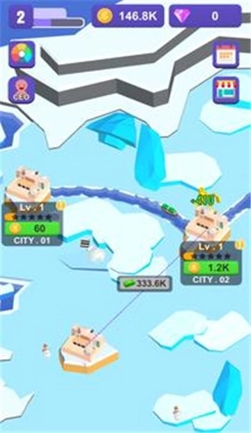 2.冰面下有很多暗藏着的危险,玩家需要不断地避开各种障碍物,将适合的航运渠道打造出来。