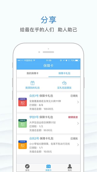 7、零钱罐,当充值礼包送好友时,未被领取的礼包金额退回至零钱罐,零钱罐金额只能用于购买平台内的其他互助计划,或者重新购买礼包送给好友。