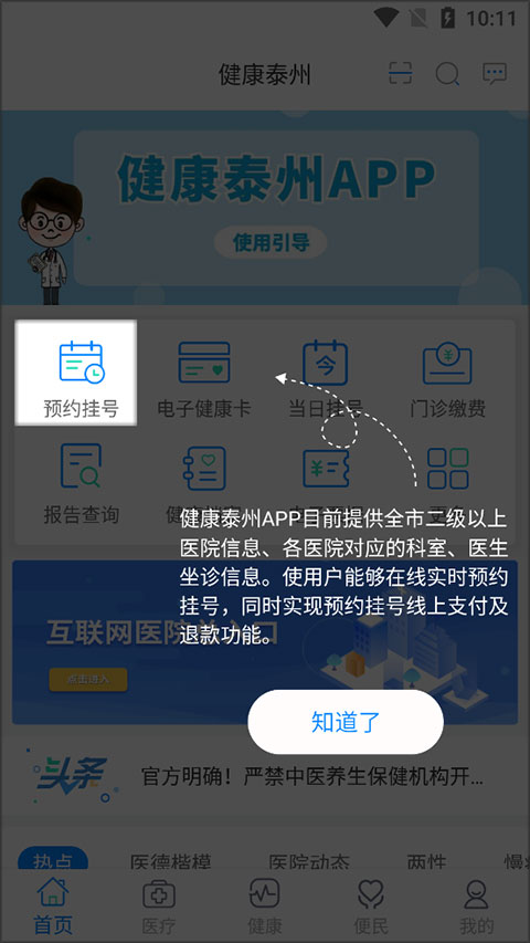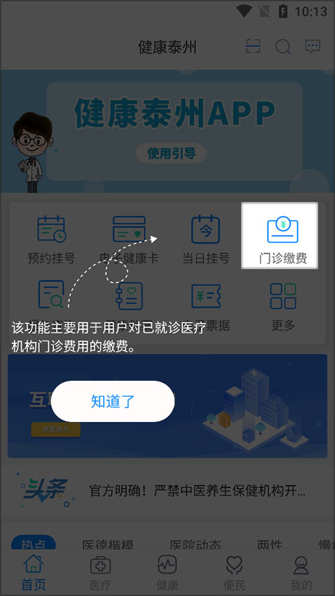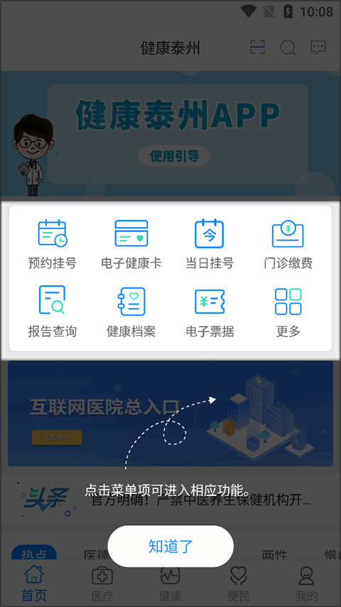 直接在APP内实现在线挂号、缴费等功能!最重磅的核心功能,健康泰州APP还可以直接进行医保的报销。