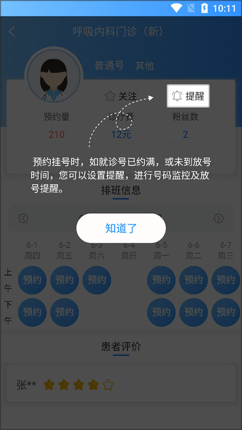 5、如果诊号已约满,或未到放号世界,你可以设置提醒,进行号码监控及放号提醒。