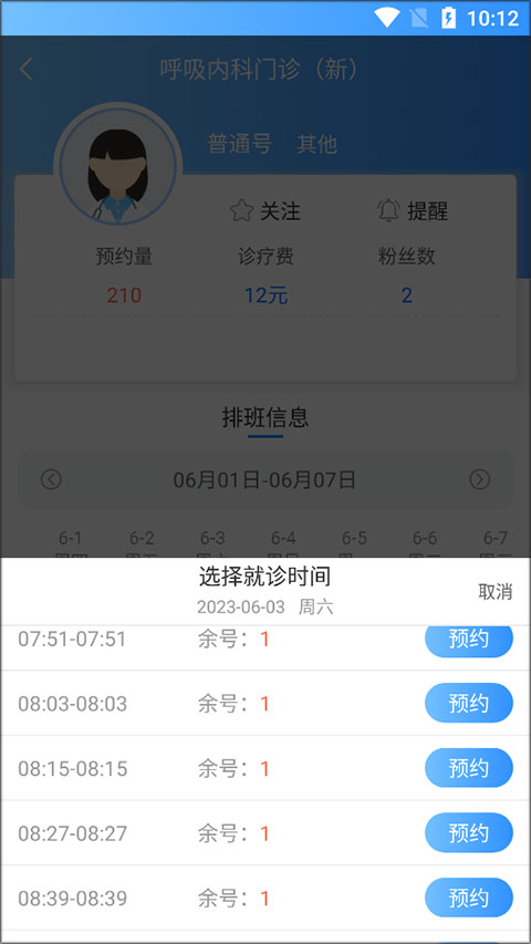 6、选择就诊时间;
