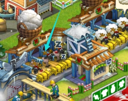看到蓝色箭头指的牧羊场的小羊羊都是光秃秃的,说明羊毛被剪光了,急需补充饲料。