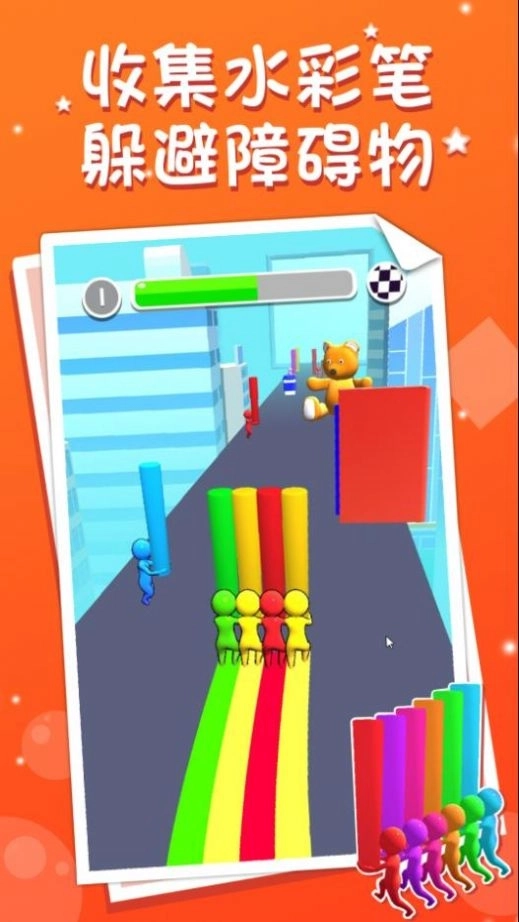 街头疾驰挑战是一款能够操控多种彩色卡通橡皮小人,展示多样技能以通关的跑酷游戏。每种颜色的橡皮小人都有自己的跑道,你需要在相应的赛道上进行更多冒险,全力以赴冲刺,争取夺得第一。