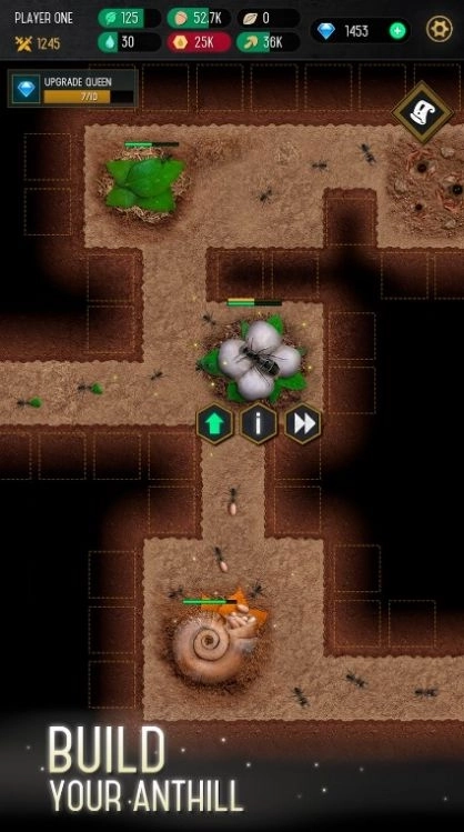 3、玩家可以管理和培养蚂蚁队伍,增加蚂蚁的能力和生产效率,解锁不同的游戏职能快速了解即可。