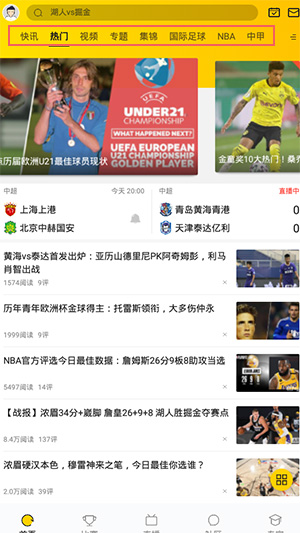 2、体育头条,提供最新的热门体育资讯,涵盖中国男足、NBA、英超、CBA、西甲、意甲和德甲等赛事。