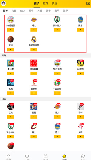 4、点开社区,可以查看加入湖人、勇士、篮球、皇家马德里、电竞、世界杯、猛龙等社区,和其他用户一起讨论;