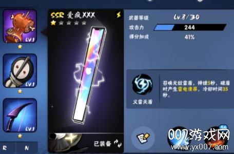 一个使用苹果手机名字的武器,也是十分强的,有着召唤雷盾的技能,破盾还可以产生雷电清屏