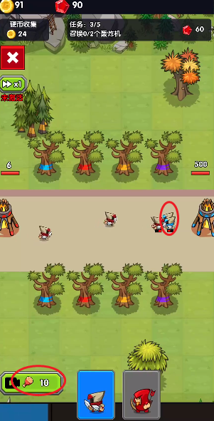 1、逆天开局,我方只有两滴血,而对手却有500滴血,所以不能硬拼,先攒金币。