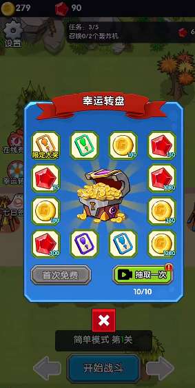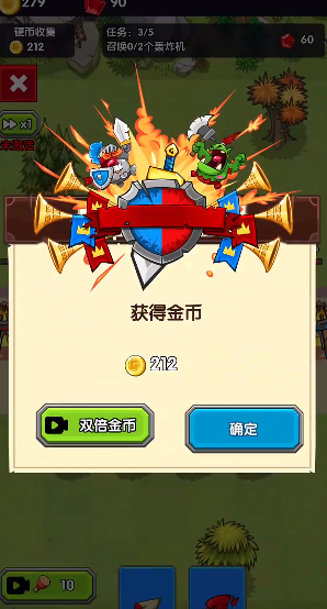 看广告可以获取免费食物,每次击败一个敌方兵种即可赚取金币