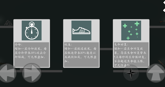 打过一关的敌人之后可以肉鸽三选一进行能力提升,有选择 策略 性。战斗的强度略高,有一定挑战性。