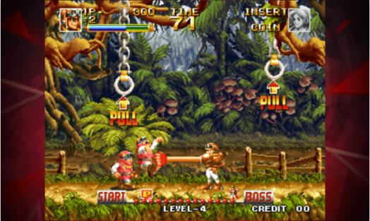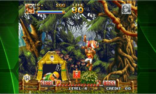 1、在水平版本的格斗游戏中,有两个主角,一个是男性,打扮成 坦克 玩家,另一个是带垫肩的女战士;