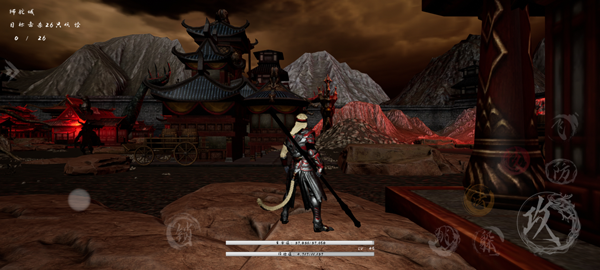 2、本游戏采用横向移动的操作方式,左侧的控制轮盘负责角色移动,而右侧则配有攻击、技能和跳跃的按钮。
