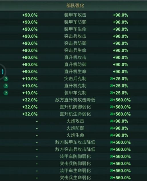 最后,希望各位新手玩家在兵种强化部分可以尽快达到如图效果,从此跨服主动出击,再也不用小心翼翼。