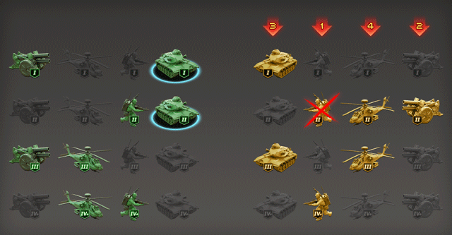 2. 除火炮会被所有兵种克制外,装甲车克制突击兵,突击兵克制直升机,直升机克制坦克。
