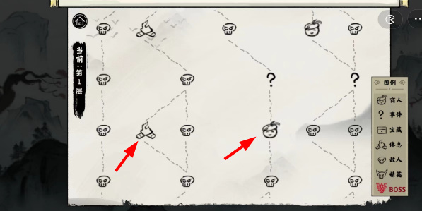 3、游戏:在游戏过程中我们需要先查看关卡地图,找到拥有 商人 、火把、问号的地方。