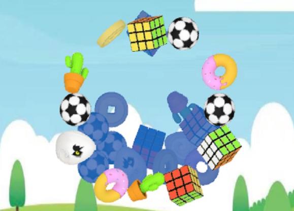 在一个大圆盘之中 点 点 点 三个相同的物品就消掉啦;