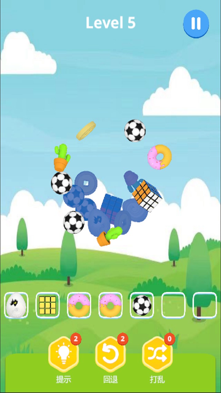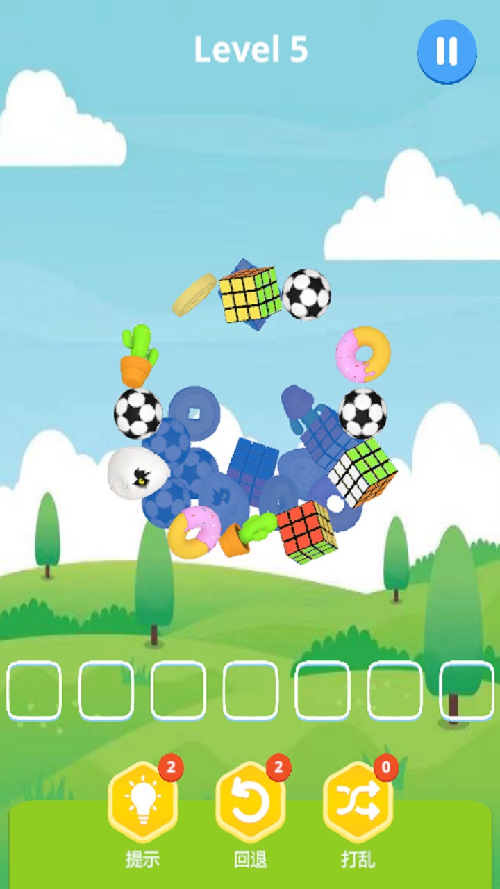 玩了个羊,游戏方式和最近大火的羊了个羊相似,都是通过匹配三张相同的图片来消除,屏幕上会展示大量随机图片,每次可消除三个。你能闯过多少关呢?