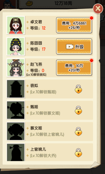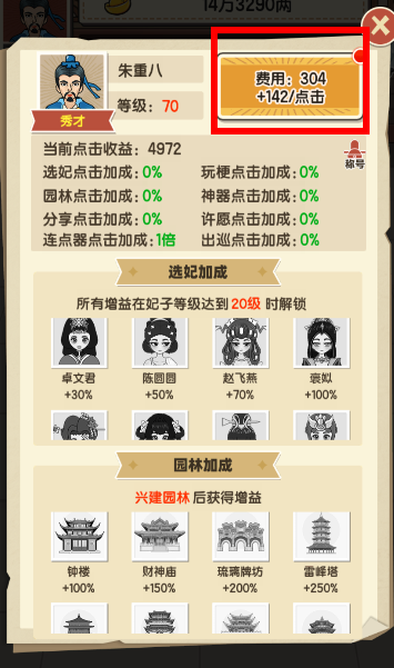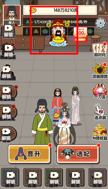 3、解锁选妃,更多妃子提高你的元宝收益