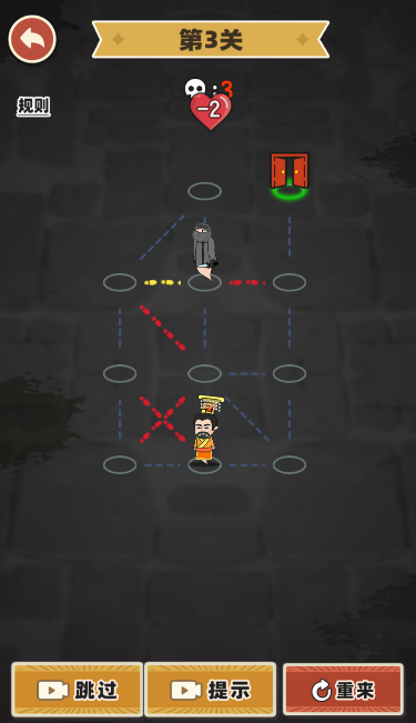 2、按照规则操控皇帝走黄线,躲避刺客,手速要快,直接到达门即可通关了