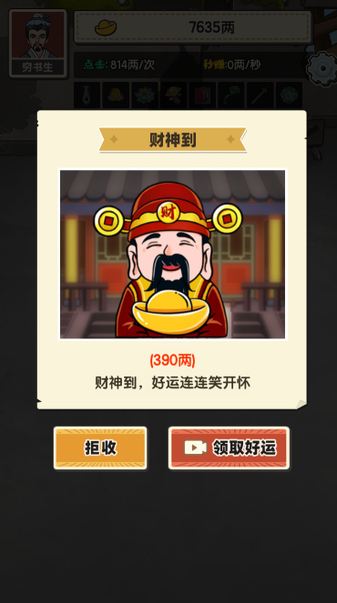 领取好运,即可获得390两,后续财神头像带来的好运收益将逐渐增加。