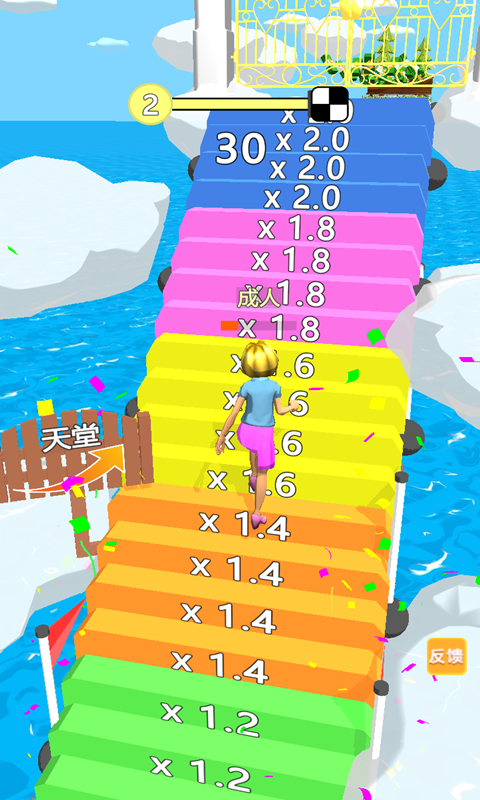 1、遇到的障碍物需要玩家自己来选择,收集跑道上大量的物品使自己变得年轻。
