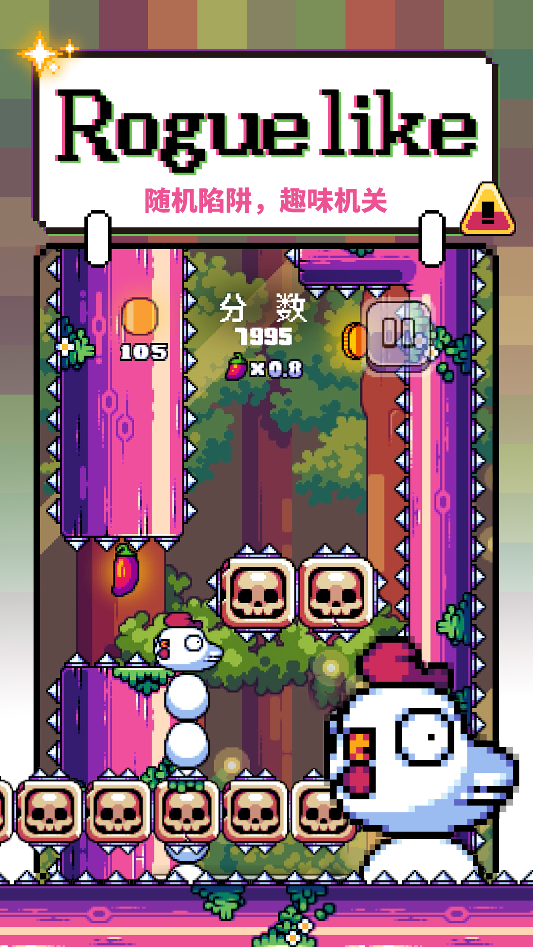 3、通过游戏内金币,您可以解锁各种有趣的咕咕鸡皮肤和能力,让您的冒险更加多彩。