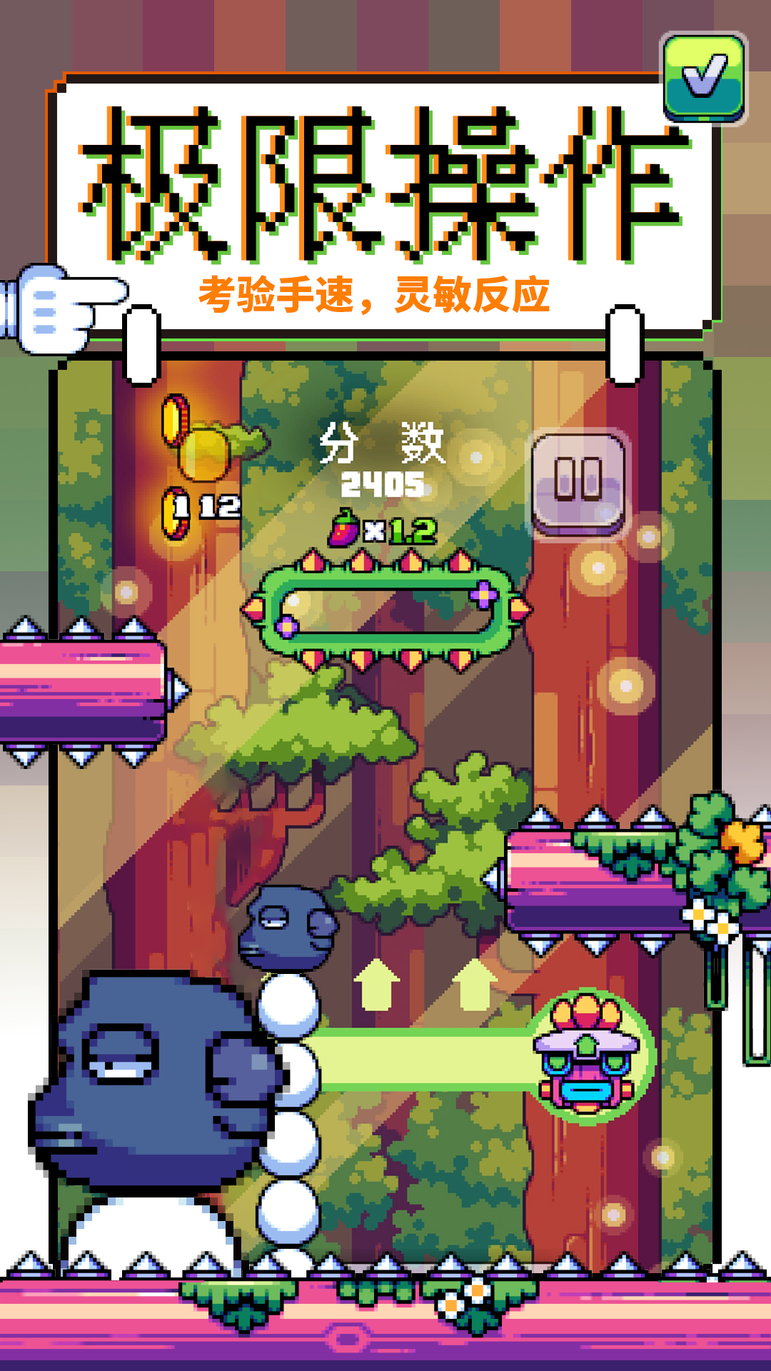 在只能向上的冒险世界里不停向上冲刺,获取高分!