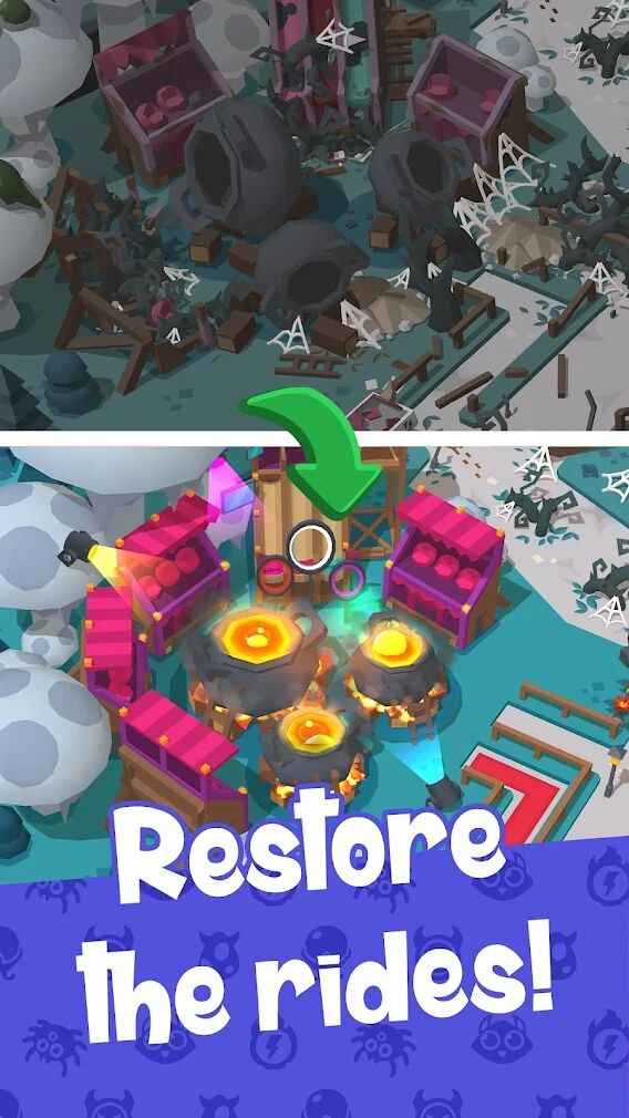 1.玩家需要完成消除挑战 收集 碎片, 合成 碎片才能解锁新设施;