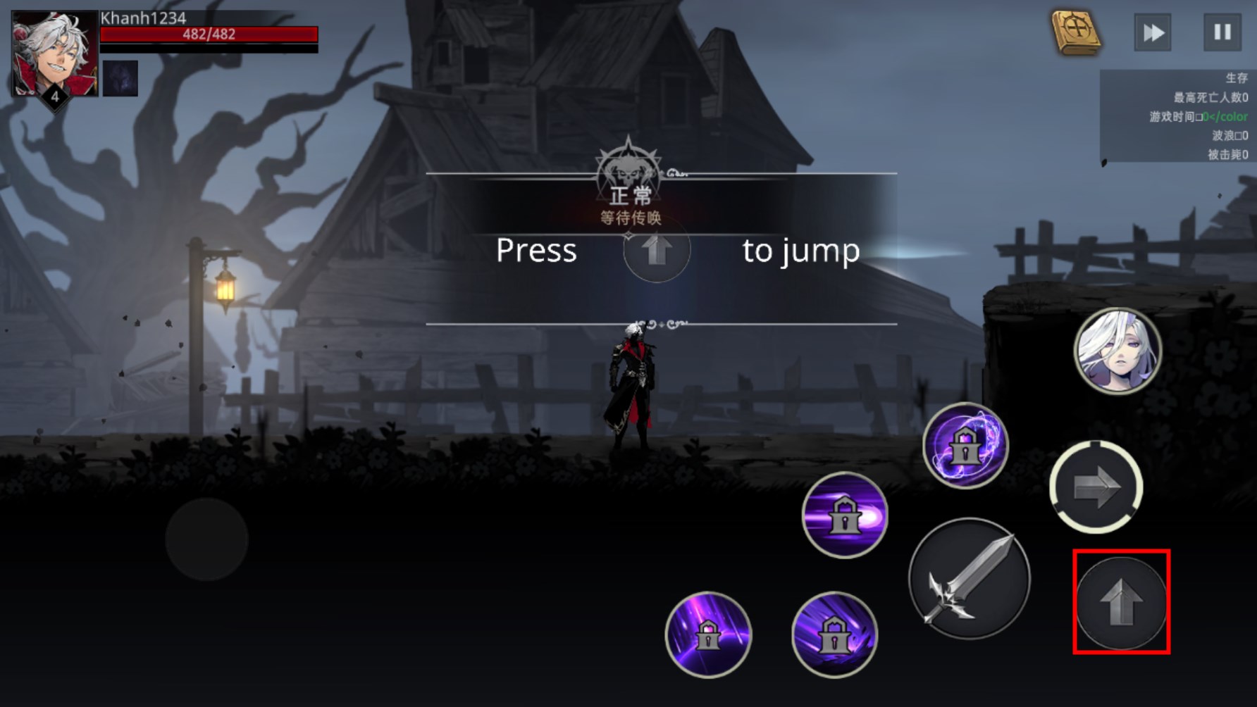 进入后,左边的按钮控制角色前后移动,向上箭头使角色跳跃,连续双击可跳得更高。